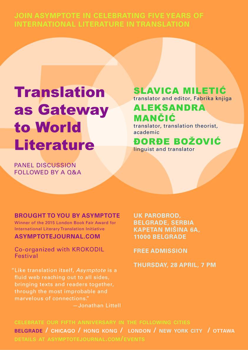 Link za facebook event ovog predstavljanja možete videti ovde, a trejler za novo izdanje časopisa Asymptote ovde.